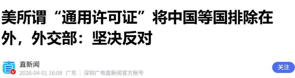 据新华社2026年4月1日报道,我国外交部发言人毛宁已明确作出回应,对美方通过操弄所谓“通用许可证”、无端限制中委正常合作的行为表示坚决反对,并重申中方在委内瑞拉的合法权益,必须得到尊重与切实保护。